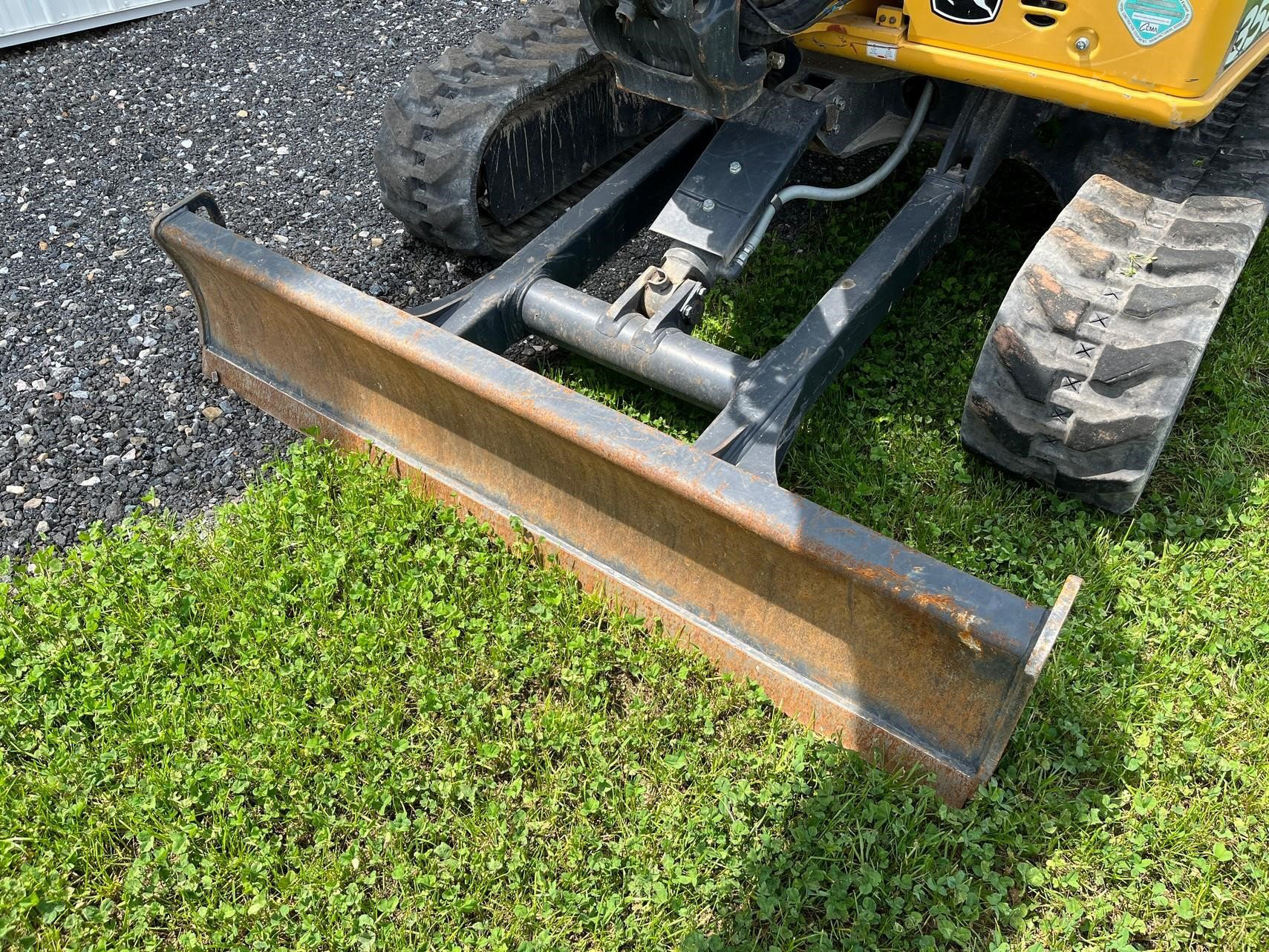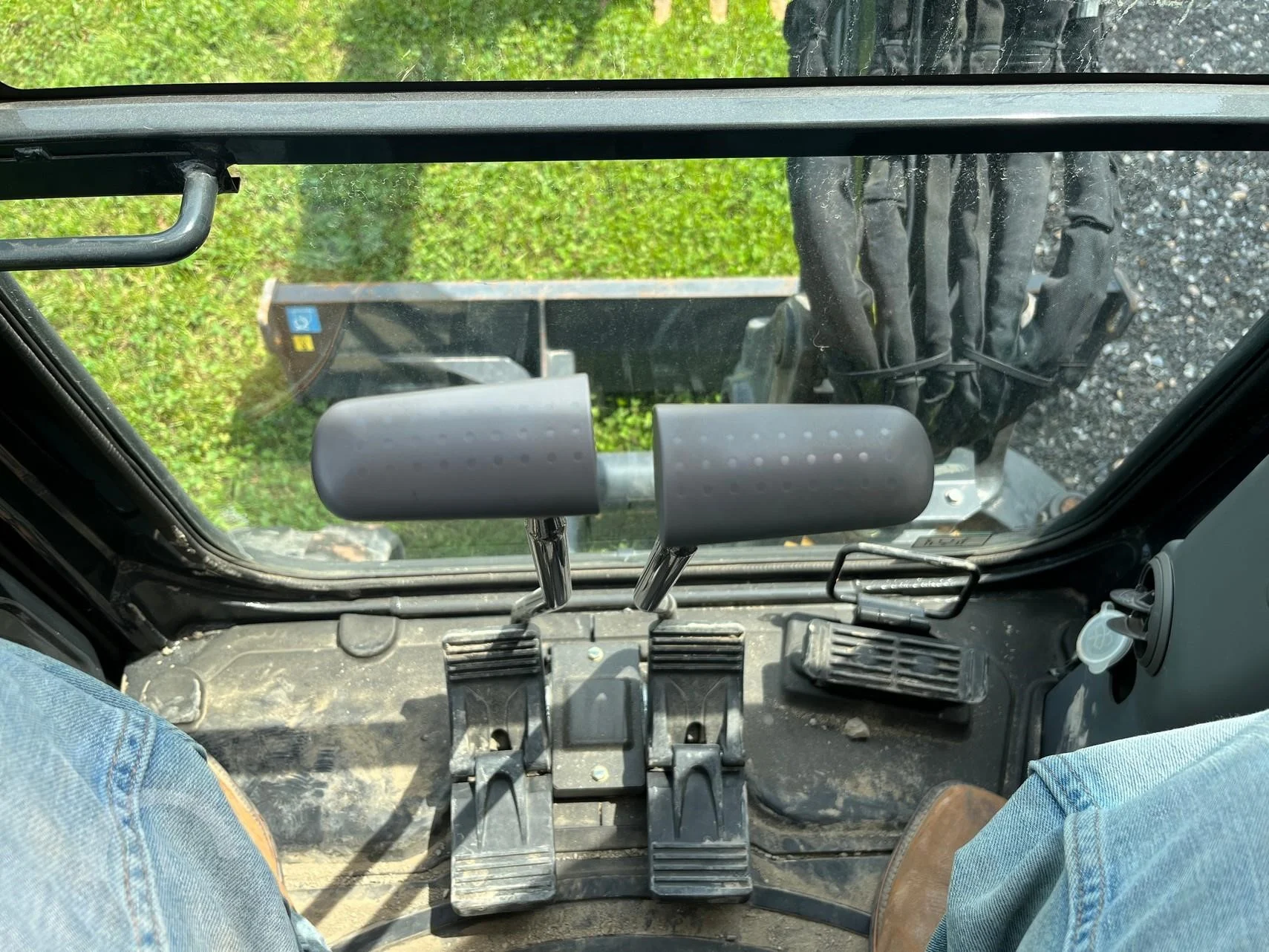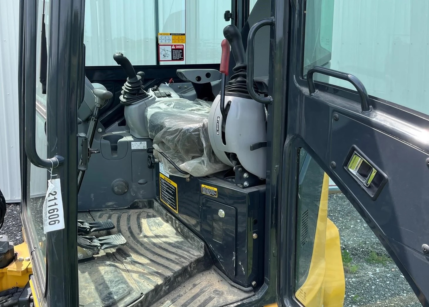 Clean, low-hour machine ready to work. Features enclosed cab with heat, A/C, and radio, 2-speed travel, hydraulic thumb, AUX hydraulics, and mechanical coupler. Powered by a reliable 23 HP Yanmar diesel engine. Includes 24” bucket, 70” backfill blade, and rubber tracks. 10 ft dig depth, 8,555 lbs operating weight.