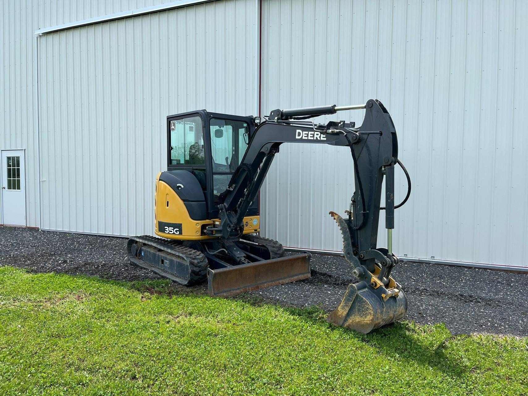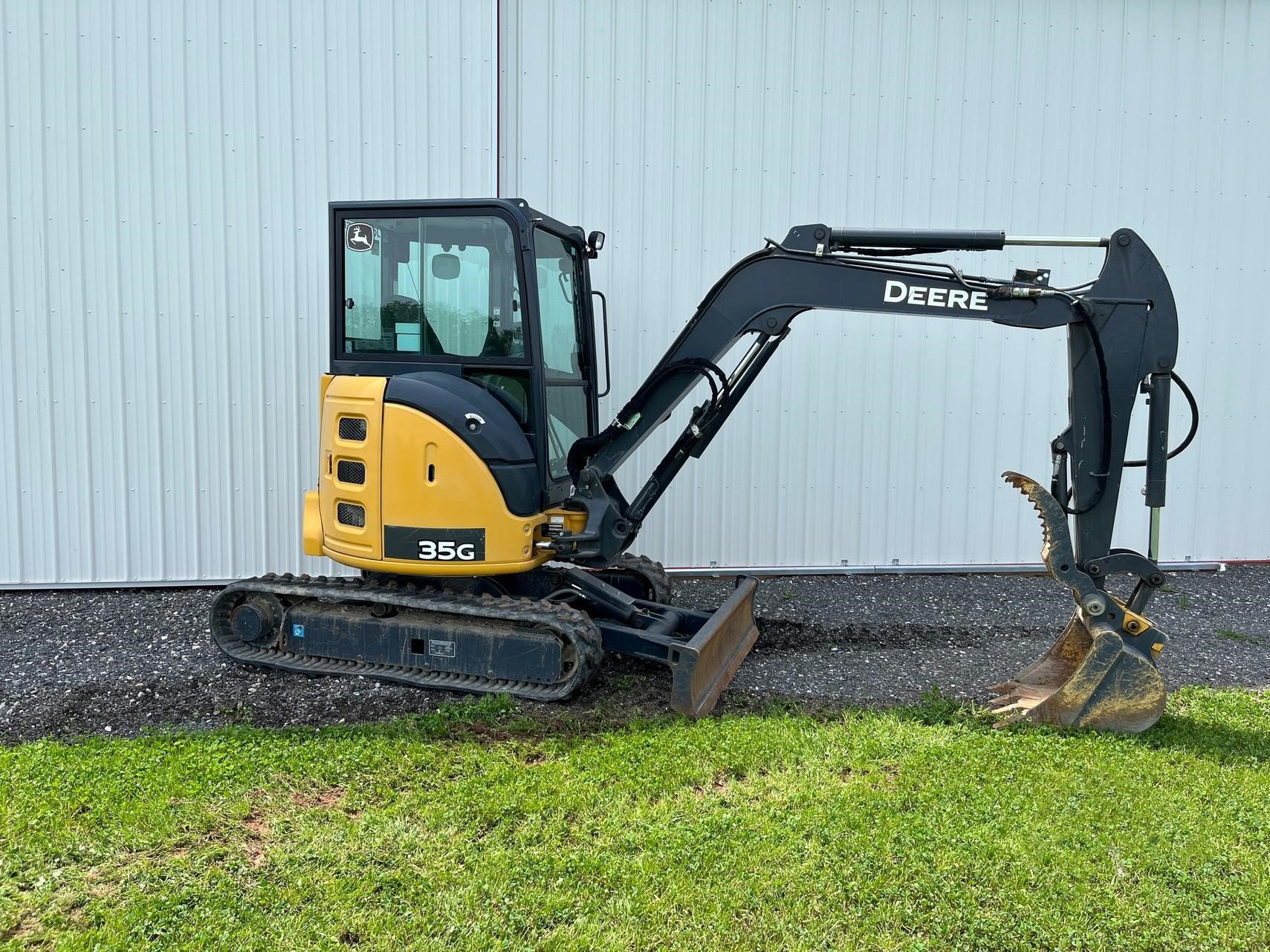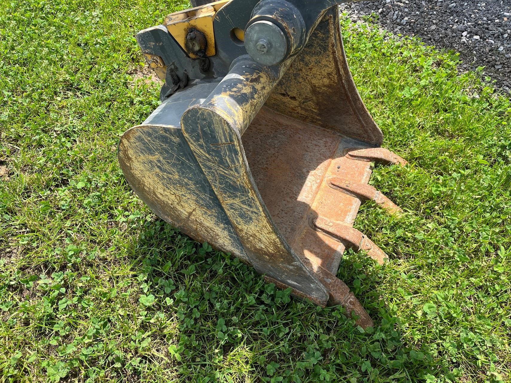 Clean, low-hour machine ready to work. Features enclosed cab with heat, A/C, and radio, 2-speed travel, hydraulic thumb, AUX hydraulics, and mechanical coupler. Powered by a reliable 23 HP Yanmar diesel engine. Includes 24” bucket, 70” backfill blade, and rubber tracks. 10 ft dig depth, 8,555 lbs operating weight.