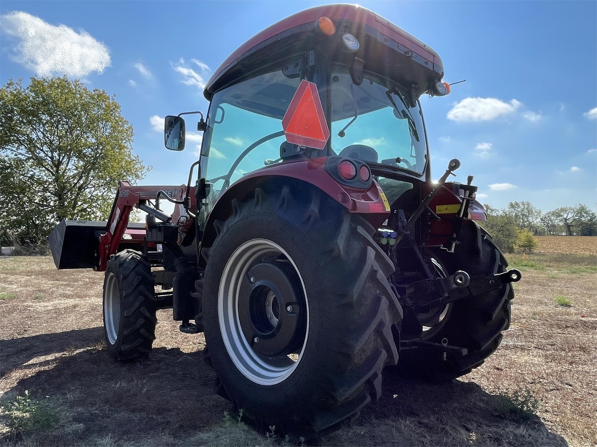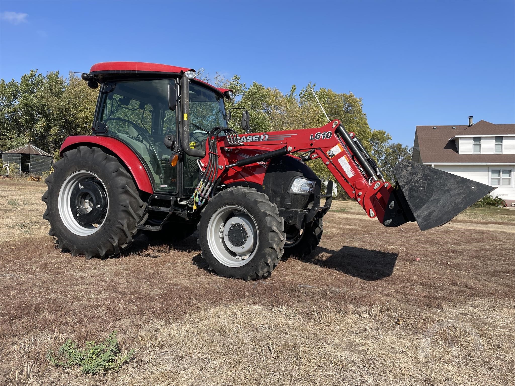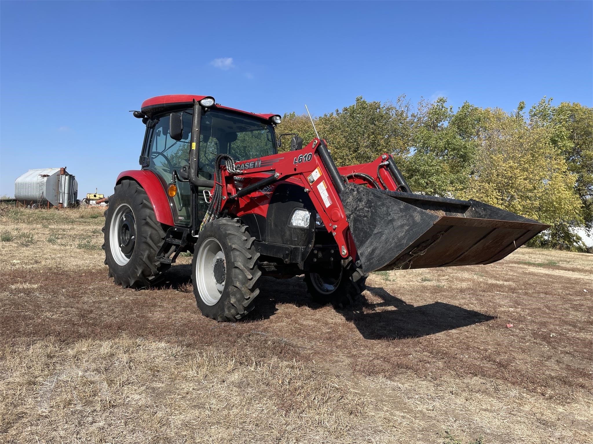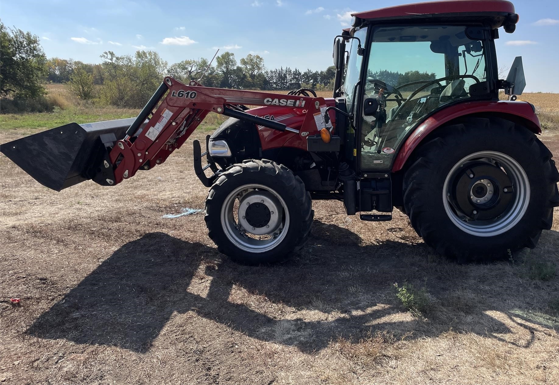 Clean, low-hour tractor with 55 HP engine and MFWD. Equipped with 12x12 transmission (left-hand shuttle), enclosed cab with heat, A/C, and radio, plus Case IH L610 loader. Features 3-point hitch, 540 PTO, rear wheel weights, and dual rear remotes with mid-mount hydraulics. Well-maintained estate unit, ready to work.